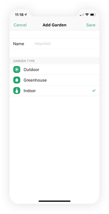 - •Choose type (outdoor/greenhouse/indoor) and name your garden.