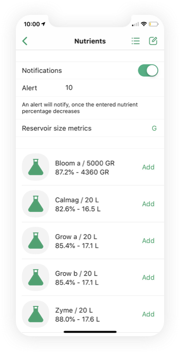 Automatically calculates daily nutrient usage and tracks inventory based on your custom feeding schedule.
